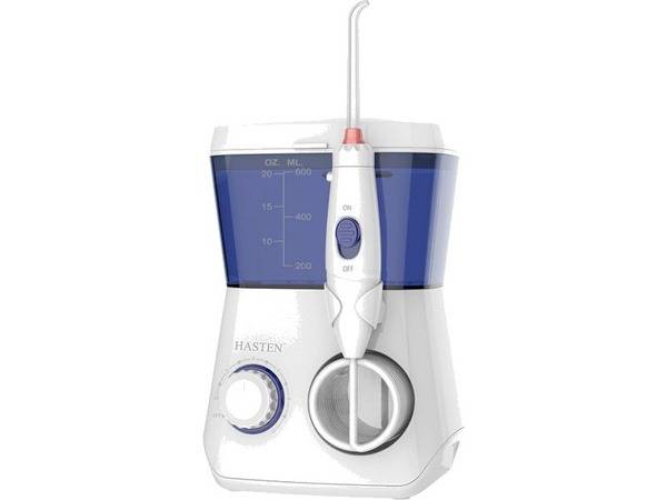 Keywords: oral irrigator, water flosser, stationary irrigator, HASTEN HAS830, dental irrigator, family irrigator, 8 nozzles, 600ml reservoir, high pressure, 10 pressure settings, 360° rotating nozzle, hydraulic toothbrush nozzle, dental hygiene, teeth cleaning, interdental cleaning, implants, braces, bridges, crowns, orthodontic appliances, portable irrigator, quiet operation, 12-month warranty.