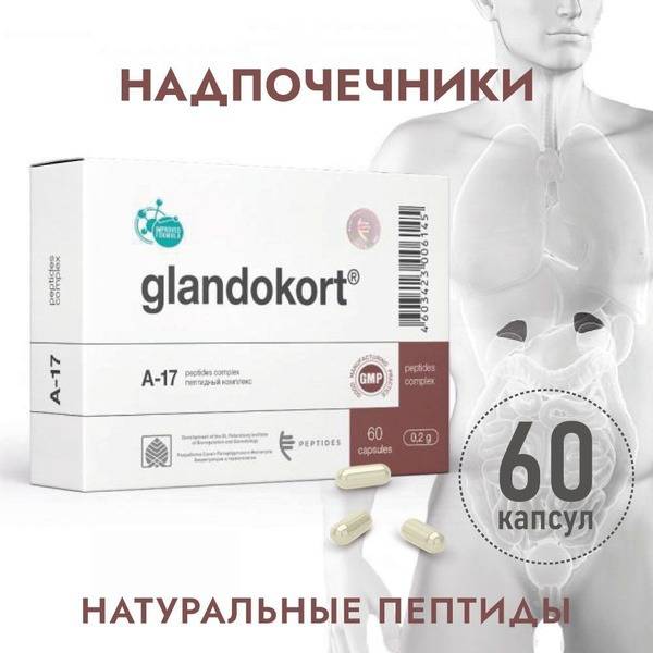 Glandokort, Havinson Peptides, adrenal peptides, adrenal fatigue, adrenal support, hormone balance, endocrine support, stress relief, cortisol, adrenaline, noradrenaline, mineralocorticoids, glucocorticoids, peptide therapy, anti-aging, natural supplement, adrenal gland dysfunction, water-electrolyte balance, burnout, depression, clinical studies, 60 capsules.