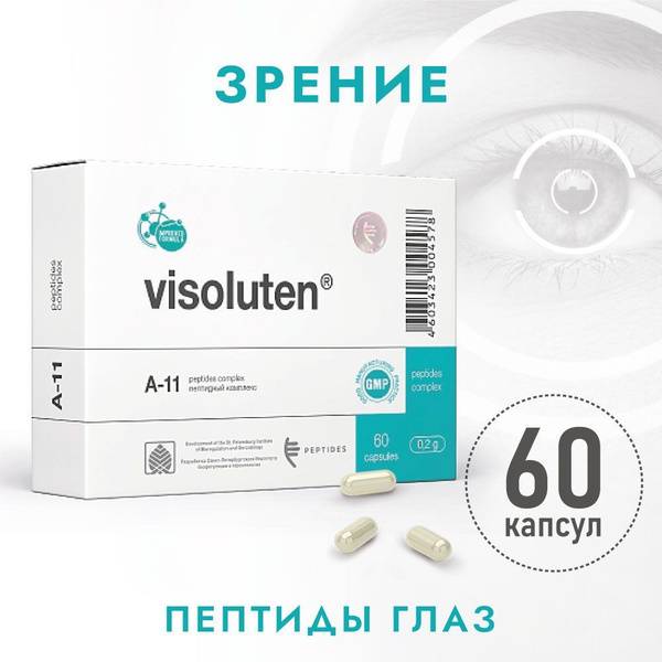 Visolutene, a natural peptide bioregulator for eye health, supports vision restoration and helps maintain healthy eyes. Formulated with peptides extracted from the organs of young animals, Visolutene targets the eye's tissues – including the eyeball, retina, muscles, and optic nerves – promoting cellular regeneration and improved function. It's designed to address age-related vision decline and combat the negative impacts of modern life, such as excessive screen time, environmental stressors, and chronic stress.