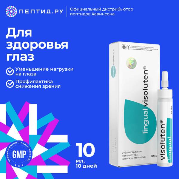 Visolutene Lingual is a revolutionary eye supplement formulated with natural Havinson peptides, developed by the renowned St. Petersburg Institute of Bioregulation and Gerontology. These peptides, extracted from the eye tissues of young animals, provide targeted support for the complex structures of your eyes.
