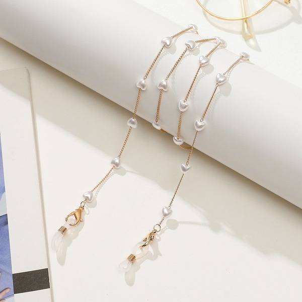 Description: Do your glasses constantly slip down your nose or mysteriously disappear at the worst possible moment? If you only wear glasses occasionally—for distance or close-up vision—an eyeglass chain is the perfect solution. Easily attached to your temples and worn around your neck, these chains keep your glasses secure and readily accessible, preventing frustrating losses and accidental drops. Perfect for both prescription and sunglasses. This elegant heart-shaped pearl eyeglass chain in gold adds a touch of sophisticated style to your eyewear.