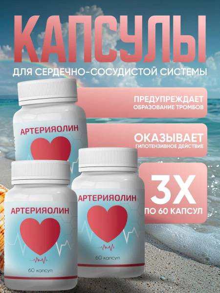 Arteriolin heart and blood vessel vitamins offer comprehensive support for cardiovascular health. Our unique formula combines essential vitamins, minerals, and potent botanical extracts (hawthorn, ginkgo biloba, mint, and lemon balm) to help maintain healthy blood pressure, strengthen blood vessels, regulate heart rhythm, and reduce stress. Arteriolin promotes blood vessel elasticity, protects against oxidative stress, and supports healthy cholesterol levels. Rich in Omega-3 fatty acids, it contributes to the structure and function of the heart and blood vessels. This convenient daily supplement is suitable for both men and women of all ages, helping to reduce the risk of hypertension, and supporting overall cardiovascular well-being. Take 1 capsule twice daily with water. Recommended course: 30 days, followed by a 30-day break.
