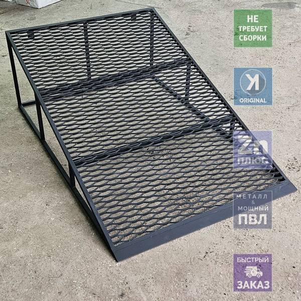 This robust, ready-to-install outdoor ramp provides safe and easy access for wheelchairs and other mobility aids. Perfect for homes, cottages, pools, saunas, sheds, and more. Measuring 51cm (H) x 150cm (W) x 150cm (D), it features a strong all-welded steel frame (20x20 profile) with a durable 4mm PVL-406 surface. Finished with weather-resistant Elcon paint, this ramp is built to last. Secure wall mounting is facilitated by pre-drilled holes under the platform. Proudly made in Russia using domestically sourced materials. Support local manufacturers with this high-quality, ready-to-use ramp.