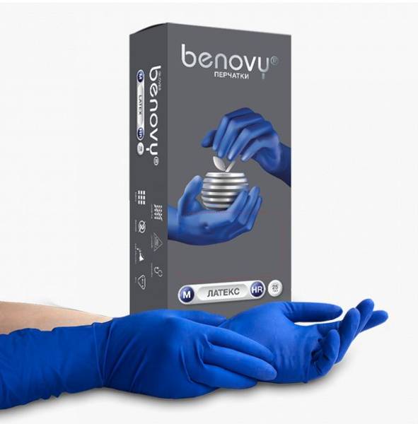 Benovy blue nitrile disposable gloves offer superior protection and durability. These powder-free gloves (13g, 25 pairs/50 gloves) are ideal for a wide range of applications, including cleaning, catering, HoReCa, automotive repair, gardening, and even some clinical and diagnostic procedures. Their extended 300mm cuff with roll provides extra protection against spills and splashes. Benovy High Risk gloves are exceptionally strong and resistant to a variety of chemicals, weak acids, and alkalis, making them perfect for tasks requiring heightened protection against aggressive substances. The powder-free inner surface minimizes the risk of dermatitis. Choose Benovy for reliable hygiene and superior protection.