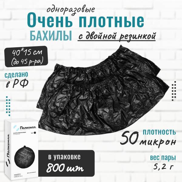 Polyhill's extra-thick disposable shoe covers offer superior protection and durability. These 50-micron (50µm), 5.1-gram shoe covers are made from high-quality, primary low-density polyethylene (LDPE) sourced and manufactured entirely in Russia. Featuring double reinforced elastic bands for a secure fit, these covers provide long-lasting protection (8+ hours) in dry indoor environments.