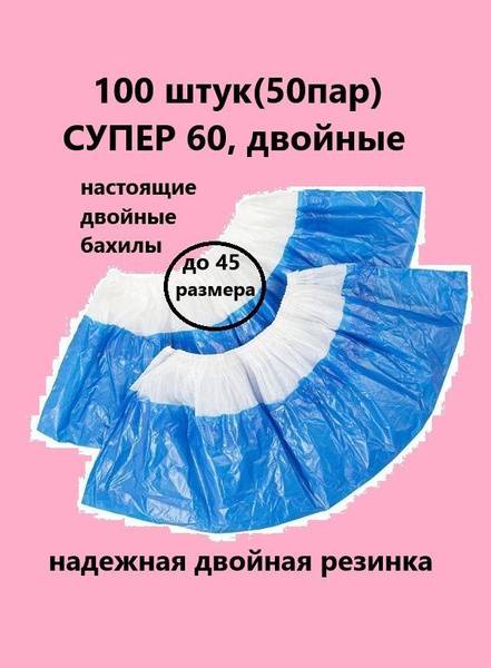 <img src="double-shoe-covers-60-micron.jpg" alt="Heavy-duty double shoe covers, 60 micron, waterproof, blue and white, size 13">