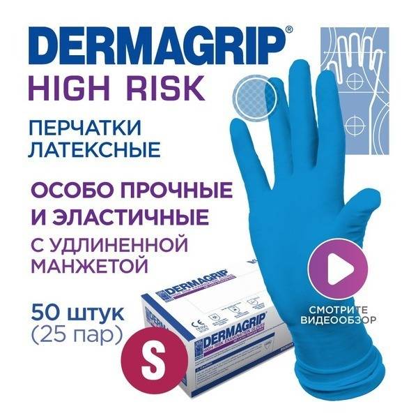 Heavy-Duty Latex Gloves, DERMAGRIP HIGH RISK S - Box of 50