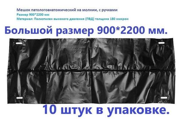 These heavy-duty autopsy bags are designed for secure and reliable transportation and storage of human remains. Crafted from durable 180 micron high-density polyethylene (HDPE) film (GOST 10354-82, first grade), these black bags offer superior strength and tear resistance. Each bag features a reliable zipper closure, reinforced handles for safe lifting (80kg capacity), and a convenient external pocket for secure document storage. The reinforced sides further enhance durability. The bags are waterproof, impermeable to biological fluids, and boast a high load-bearing capacity of 180kg.
