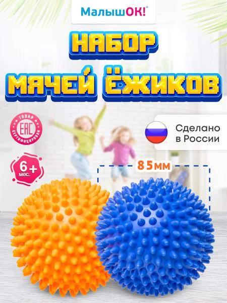 Description: Engage your little one with the Alpina Plast Hedgehog Massage Ball Set! This vibrant 2-pack (orange and blue, 8.5cm diameter) offers a fun and stimulating sensory experience for babies and toddlers aged 6 months+. Perfect for playtime at home or daycare, these textured massage balls encourage the development of reaction time, hand-eye coordination, color recognition, and tactile perception. Made from safe, durable, and eco-friendly materials, these balls are also great for bath time fun! Promote your child's development with this playful and beneficial toy.