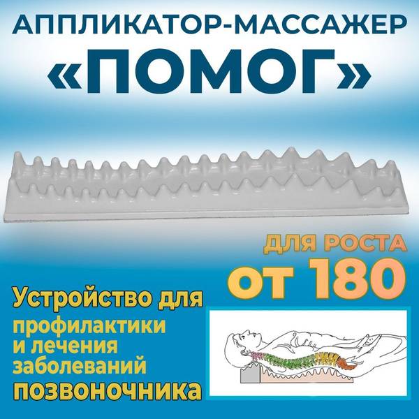 Description: The POMOG back massager applicator features a unique design of 19 pairs of parallel, rounded protrusions interconnected by curved surfaces. Resembling a comb that conforms to the spine's natural curvature, its strategically positioned protrusions simultaneously target all muscle groups along the spinal column, from the sacrum to the cervical region. This innovative design provides several key benefits: