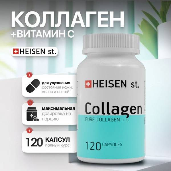 Collagen supplements, collagen capsules, vitamin C supplement, skin health, hair health, nail health, joint health, Heisen Standards, Swiss collagen, beauty supplement, anti-aging supplement, collagen peptides, dietary supplement, health supplement.