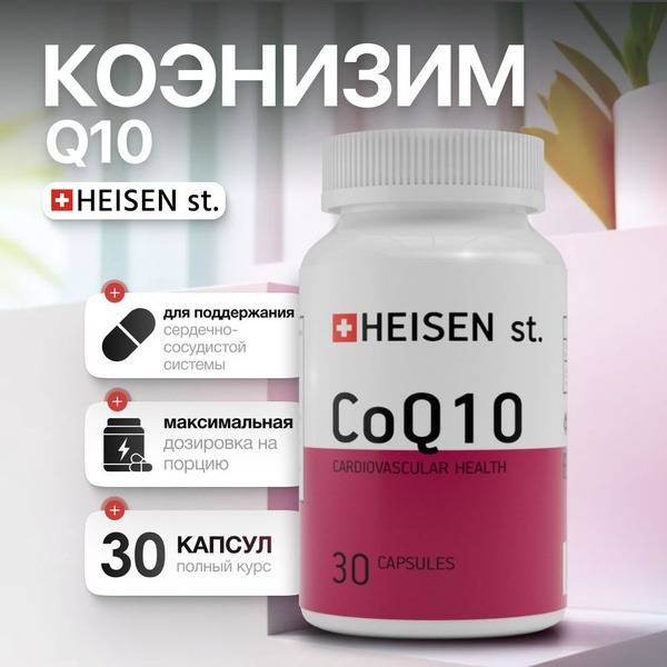 Coenzyme Q10, Ubiquinone, Heisen, Swiss, Dietary Supplement, Antioxidant, Cellular Energy, Mitochondria, Health Supplement, Energy Booster, Anti-Aging, Swiss Made, High Quality, Supplement, Capsules.