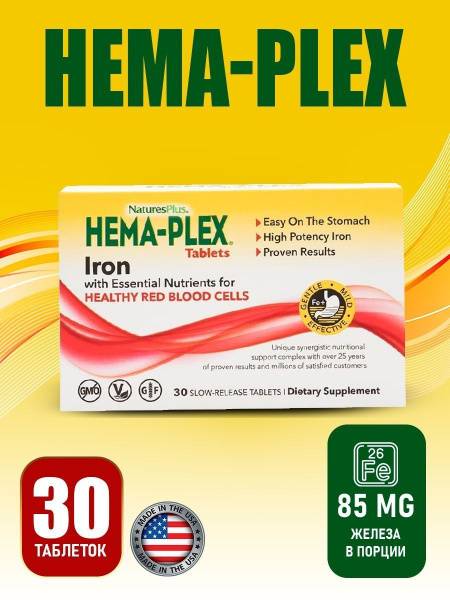 Hema-Plex by Nature's Plus is an advanced vitamin and mineral complex formulated to support healthy blood glucose and hemoglobin levels. This comprehensive supplement helps improve overall blood health, boosting immunity, reducing fatigue, and regulating metabolism. Hema-Plex supports healthy pancreatic function and insulin production, stimulates the body's natural defenses, provides antioxidant protection, and contributes to cardiovascular health. Experience improved energy levels and vitality with Nature's Plus Hema-Plex.