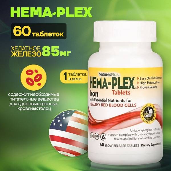 Hema-Plex, chelated iron, extended release, iron supplement, iron deficiency, blood health, energy, endurance, cardiovascular health, vitamins, gentle formula, dietary supplement, 60 tablets, iron absorption, healthy blood levels.