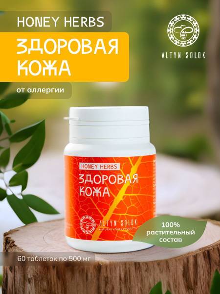 Altyn Solok's Honey Herbs Healthy Skin herbal supplement provides powerful, natural allergy relief. These 60, 500mg tablets offer anti-inflammatory, blood-purifying, anti-allergic, wound-healing, and soothing properties. Formulated with valuable natural ingredients harvested from the pristine steppes and mountains of Bashkortostan, this supplement helps normalize your body's response to environmental allergens, particularly during flare-ups. It cleanses the body, improves metabolism, eliminates toxins, and promotes healthy skin. The active plant-based ingredients possess anti-inflammatory, healing, and calming properties. Vitamins and minerals contribute to overall well-being and immune system support. Free from harmful dyes, flavorings, GMOs, and preservatives, this supplement offers a gentle, effective approach to allergy management, unlike harsh medications. Ideal for preventing and alleviating allergy symptoms such as hay fever, urticaria, serum sickness, pruritic dermatoses, hemorrhagic vasculitis, allergic conjunctivitis, vasomotor rhinitis, bronchial asthma, eczema, and other allergic reactions. A perfect gift for promoting health and wellness in men, women, teenagers, and children.