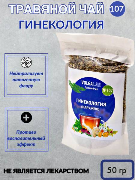 VolgaLad Herbal Tea No. 107 is a natural herbal mixture designed for external use in gynecological care. Formulated with plant-based ingredients, it supports the comfort and health of the female reproductive system.