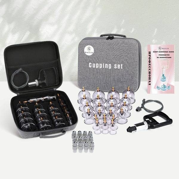 DX Dailix vacuum massage cup set combines 22 medical-grade cups with a pump and magnetic elements for structured bodywork. The kit supports vacuum massage techniques, including hijama approaches, to address skin care, muscle relaxation, and wellness routines for men and women.