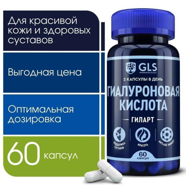 GLS Pharmaceuticals Hyaluronic Acid Capsules provide a dietary supplement formulated to support cartilage tissue, skin hydration, and joint comfort. Each daily dose delivers hyaluronic acid, a natural component that helps retain water in tissues.