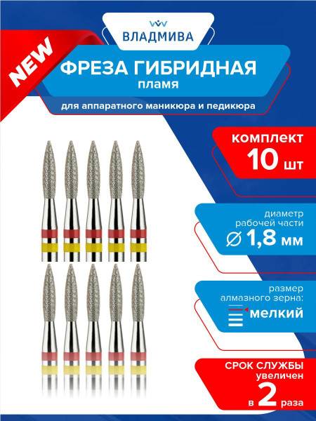 <hr>Discover the superior performance of the Hybrid Flame Diamond Nail Drill Bit, engineered with a fine 1.8mm grit for precision work. This convenient 10-piece kit (856.104.243.080.018G) delivers outstanding results in manicure and pedicure treatments.