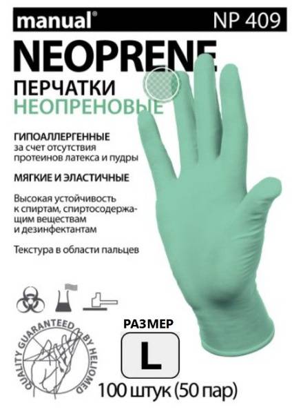 Manual Neoprene NP409 medical gloves are non-sterile, non-powdered, and hypoallergenic gloves made from neoprene. These gloves are designed for use in medical, diagnostic, and laboratory settings where a high level of protection and comfort is required.
