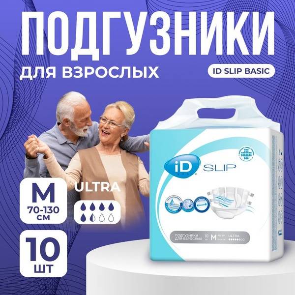 iD Slip Basic adult diapers meet the requirements of GOST R 55082-2012 for moderate incontinence. Choose the size that best suits your needs: