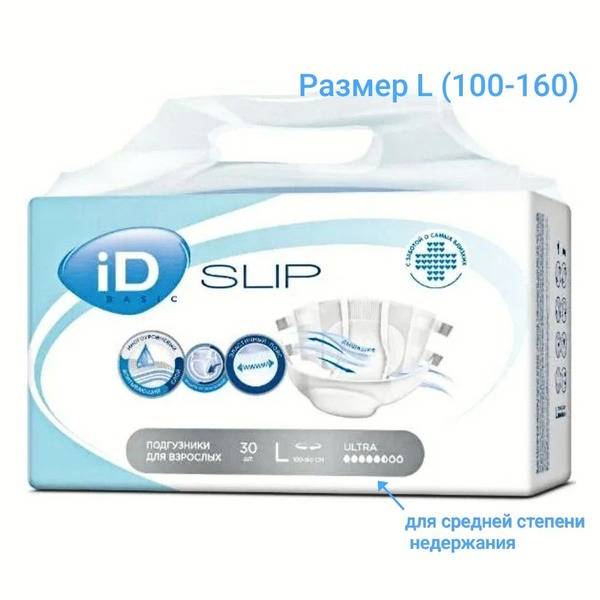 iD SLIP Ultra L adult diapers provide superior comfort and protection for individuals with moderate to severe incontinence. The multi-layered absorption core quickly wicks away moisture, minimizing skin contact with bodily fluids and helping prevent pressure sores. Leak-proof side barriers offer reliable protection against leaks, while the high absorbency locks away large amounts of fluid and neutralizes odors. A flexible waistband ensures a comfortable and secure fit, even when lying down. The innovative absorbent layer inhibits ammonia formation, reducing unpleasant odors. A wetness indicator clearly shows when a change is needed, and the reusable, refastenable closures offer a secure and convenient fit. Dermatologist-tested and gentle on sensitive skin. Experience superior comfort and peace of mind with iD SLIP Ultra L.