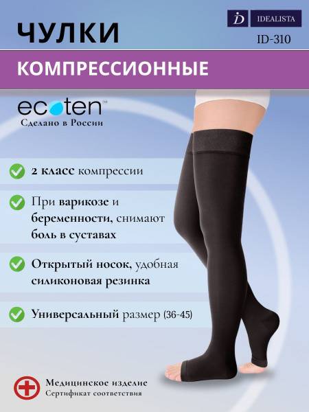 Experience the ultimate in leg comfort and support with IDEALISTA compression stockings. These high-quality, black stockings offer a 20-30 mmHg compression level (Class 2), perfect for managing a range of leg conditions and promoting healthy circulation. Designed for all-day wear, these stockings are exceptionally comfortable and durable.