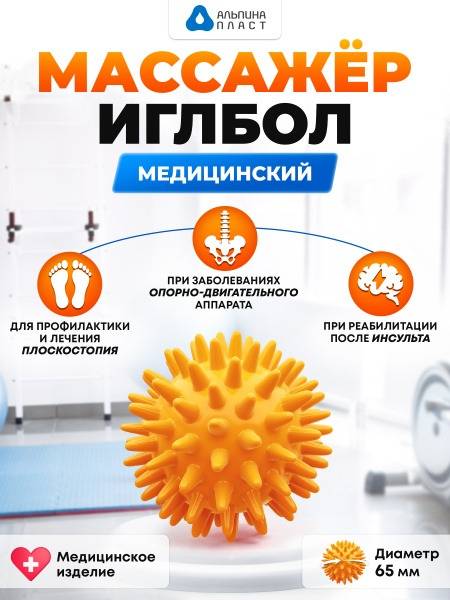 Keywords: Igloball, medical massage ball, massage ball, 65mm, orange, physiotherapy, rehabilitation, stress relief, circulation, muscle tone, venous stasis, cellulite, scoliosis, flat feet, motor skills, child development, acupressure, self-massage, home use, clinical use, post-operative recovery, post-injury rehabilitation, stroke rehabilitation, hypertonicity.