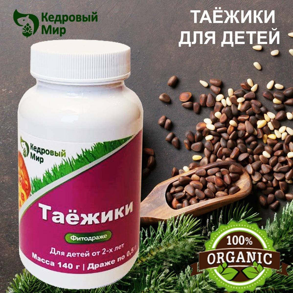 "description": "Boost your child's immunity naturally with Taiga Kids! These vibrant, delicious dragees are packed with Siberian pine nut power and a blend of potent herbs and honey, providing essential vitamins and antioxidants to support a strong immune system. Unlike artificial alternatives, Taiga Kids utilizes the natural power of rose root (Rhodiola rosea), rosehip (rich in Vitamin C – 10x more than blackcurrant!), chamomile, nettle, cedar resin (a powerful antioxidant), bee-derived chitosan (with antibacterial and antiviral properties), and Siberian pine nut protein. Help your child thrive – improve their energy levels, focus, and overall well-being with the wholesome goodness of Taiga Kids. Perfect for supporting a healthy immune response and helping them stay active and happy. 140g of pure, natural goodness.",