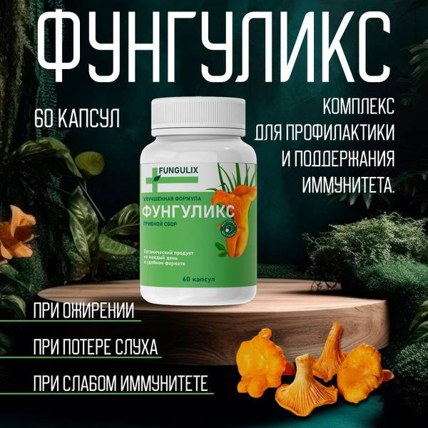 Funguliks is a powerful immune support and parasite detox complex formulated with a unique blend of medicinal mushrooms and herbs. This dual-action formula targets both parasite elimination and detoxification, supporting overall health and well-being. Funguliks helps strengthen the immune system, increase energy levels, and improve resistance to infections and diseases. Its effectiveness is particularly notable in addressing issues like hearing loss, weakened immunity, obesity, vision problems, and gastrointestinal difficulties. The natural ingredients, including D-mannose and beta-D-glucans from chanterelle mushrooms, target and break down parasite membranes, while simultaneously boosting the body's natural defenses. Unlike harsh chemical treatments, Funguliks is gentle on the body and contains no toxic substances. Each 0.5g capsule (0.4g active powder) supports complete detoxification, cleansing the liver and intestines and regulating digestion. A 30-day course (60 capsules, 1 capsule twice daily) is recommended, followed by a 6-month break before repeating.