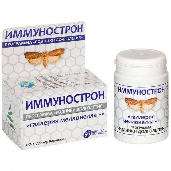 Immunostron, Galleria Mellonella, Greater Wax Moth, Reishi Mushroom, Echinacea, Vitamin C, Zinc, immune support, immune system, immune booster, natural immunity, health supplement, dietary supplement, Dr. Kornilov, capsules, 56 capsules.