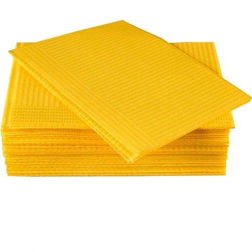 Protect clothing and work surfaces with these premium, three-ply disposable bibs. Each bib combines two layers of highly absorbent 100% cellulose paper with a strong, waterproof polyethylene film layer. Ideal for dentists, cosmetologists, tattoo artists, PMU artists, manicurists, and more, these versatile bibs function as both protective bibs and waterproof work mats. Their superior strength remains consistent even when wet. Perfect for medical centers, hospitals, veterinary clinics, massage salons, and beauty salons. Each pack contains 20 bibs, measuring 33cm x 45cm. The bright lemon color adds a cheerful touch to your professional setting.