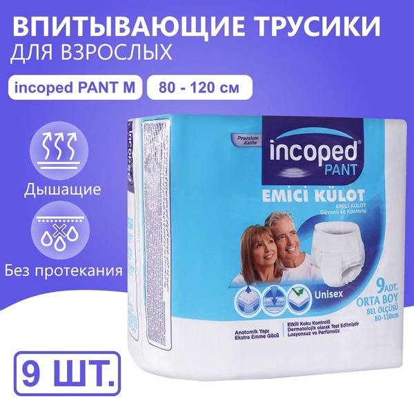 Keywords: adult diapers, adult diaper briefs, incontinence briefs, disposable underwear, breathable diapers, hypoallergenic diapers, heavy absorbency diapers, adult incontinence products, elderly care, postpartum care, menstruation protection, eco-friendly diapers, comfortable diapers, discreet diapers, Incoped, Incoped Pants, medium adult diapers, 9 count diapers.