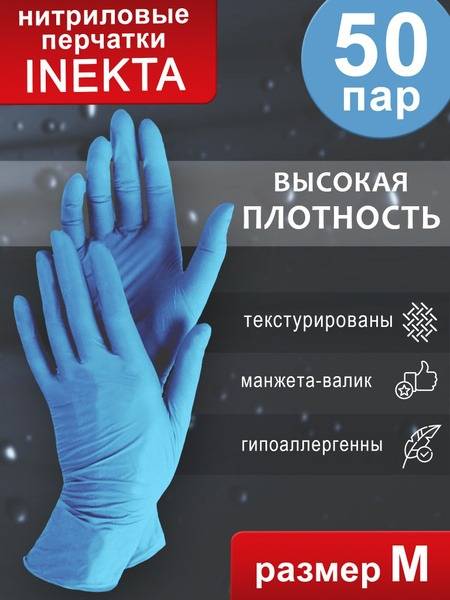 Description: INEKTA M nitrile examination gloves offer superior protection for healthcare professionals and patients against infection and contamination. Ideal for diagnostic and therapeutic procedures, these hypoallergenic gloves excel in diverse settings including laboratories, emergency rooms, dental practices, and treatment rooms. Their versatility extends to beauty salons, food service, and even household use. Featuring a textured surface for enhanced grip, a rolled cuff for easy donning, and high resistance to punctures and tears, these non-sterile, powder-free, non-anatomical gloves provide reliable protection. Made from synthetic nitrile latex with a chlorinated inner coating. 5-year shelf life.