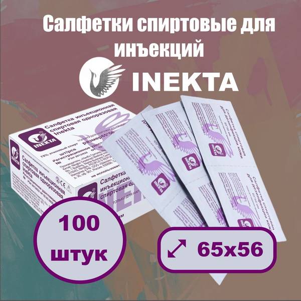 Alcohol swabs, antiseptic wipes, injection wipes, skin disinfection wipes, medical wipes, sterile wipes (though technically non-sterile, this is a common search term), Inekta, 65x56 mm, 100 count, single-use wipes, disposable wipes, ethyl alcohol wipes, isopropyl alcohol wipes, healthcare wipes, home healthcare, hospital supplies, clinic supplies, surgical supplies, nursing supplies, pre-injection prep, post-injection prep, wound care, hand sanitizer wipes, medical supplies, individual packaging.