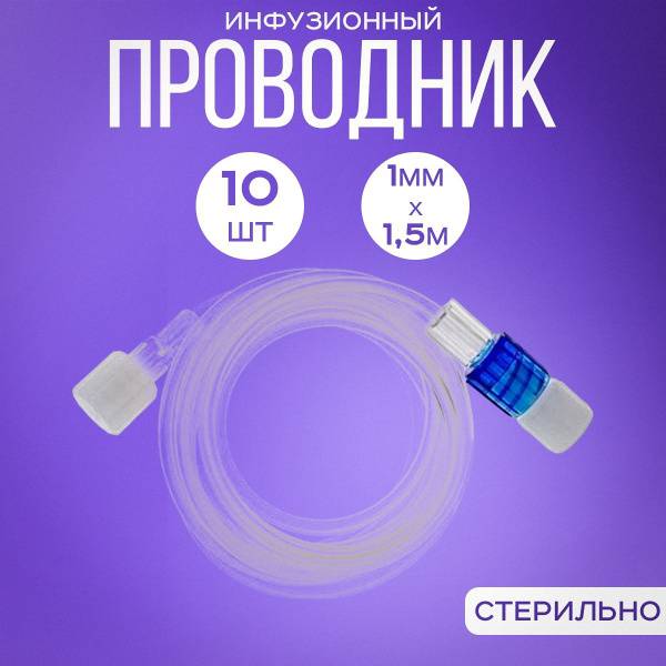 This pack of 10 infusion set tubings, each measuring 1.0 mm x 1.5 m, is designed for intravenous drug administration via syringe pumps. These light-blocking infusion lines are ideal for administering light-sensitive reagents. The small inner diameter minimizes residual medication, ensuring accurate dosage. The universal Luer-lock connector provides a secure connection with injection needles and peripheral and central venous catheters. Perfect for precise and safe intravenous fluid delivery.