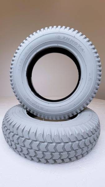 Keywords: INNOVA, 3.00-8, pneumatic tires, electric wheelchair tires, wheelchair tires, replacement tires, heavy-duty tires, puncture-resistant tires, durable tires, reinforced sidewalls, deep tread, black tires, gray tires, electric wheelchair parts, wheelchair accessories, mobility equipment, 3.00-8 wheelchair tires, electric wheelchair accessories.