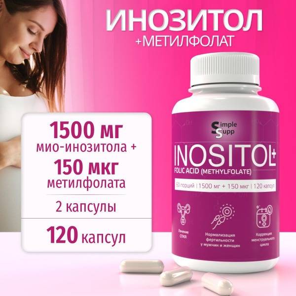 Myo-inositol, methylfolate, inositol, folate, vitamin B9, fertility, women's health, PCOS, polycystic ovary syndrome, ovulation, infertility, miscarriage, hormone balance, estrogen, insulin resistance, weight loss, acne, hair loss, blood pressure, cholesterol, mood, anxiety, depression, supplement, dietary supplement, 750mg, 120 capsules