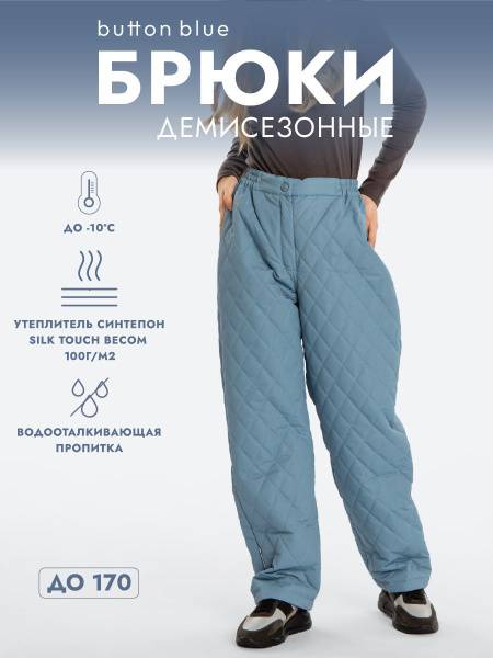 Keep your girl warm and dry this season with Button Blue's insulated, water-resistant quilted pants. These stylish, demi-season pants in a muted blue feature a flattering carrot fit – wide at the top and subtly tapered at the bottom. The soft textile lining and 100g/m² Silk touch synthetic insulation provide comfortable warmth down to -10°C (-14°F), and can be layered with thermal underwear for even colder weather. The water-repellent outer fabric shrugs off mud and slush, while the hook-and-zip front closure and elasticated back waistband ensure a comfortable fit for various body types. A subtle, light blue hue adds a fresh touch, and a reflective element enhances visibility in low-light conditions. The diamond quilting pattern adds visual interest and securely holds the insulation in place. Follow care instructions on the label.