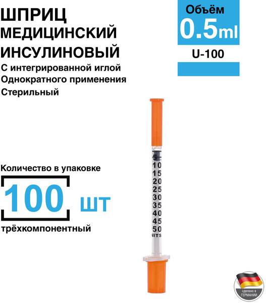 Discover premium 0.5ml insulin syringes manufactured by Vogt Medical in Germany. Each syringe features an integrated 30G (0.30 x 8mm) needle, engineered for smooth and precise insulin delivery. These disposable insulin syringes are designed for ease of use, with a clear, indelible black scale for accurate measurement in 1-unit increments.