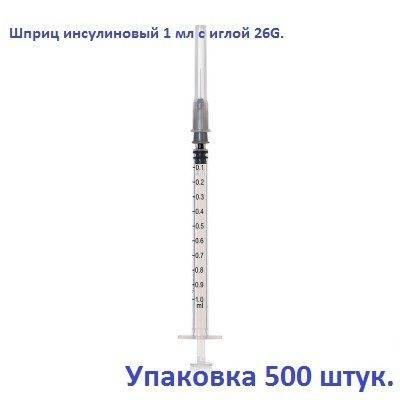 High-quality, single-use, three-part 1ml insulin syringes with a stop ring. Each syringe features a clear insulin scale (U-100) for precise dosing. A double-ring rubber seal ensures a leak-proof, smooth-gliding plunger. The 1ml barrel features a silicone coating for effortless injection. The Luer slip cannula on the distal end ensures secure connection. The included 26G (0.45 x 13mm) stainless steel needle is siliconized for smooth penetration, features a three-facet bevel for accurate injection and is capped with polypropylene for sterility. Suitable for intramuscular or subcutaneous injections. White plunger. 500 syringes per pack. Made in China.