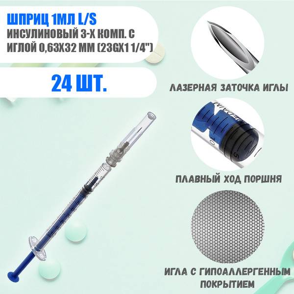 Experience superior precision and comfort with our 24-pack of 1ml U-100 insulin syringes. Each syringe is meticulously crafted for accurate and painless insulin administration, featuring a 27Gx1/2" (0.4x12mm) needle with a laser-etched, three-bevel atraumatic point. This innovative design minimizes tissue trauma, ensuring a smoother, more comfortable injection experience.