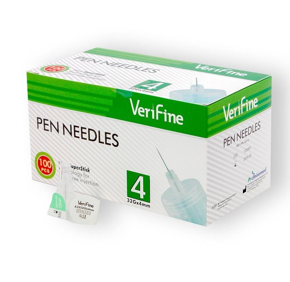 This 100-count box contains 32G x 4mm needles. Verifine insulin pen needles are approved by the Russian Ministry of Health (Roszdravnadzor), Registration Certificate No. 2018/7997 (issued December 29, 2018). Order your supply today for consistently comfortable and reliable insulin delivery.