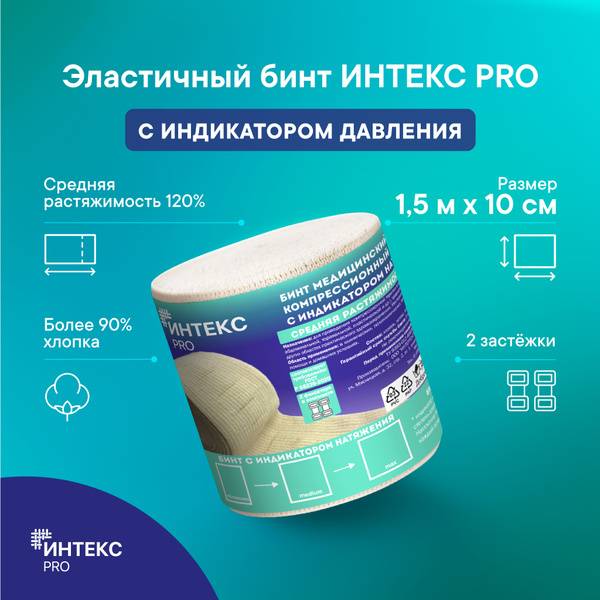 Experience superior support and comfort with the Inteks PRO elastic bandage. This 1.5m x 10cm bandage features a unique, patented pressure indicator, a rectangular feature that visually confirms the correct tension during application. This ensures even pressure distribution and optimal therapeutic benefit.