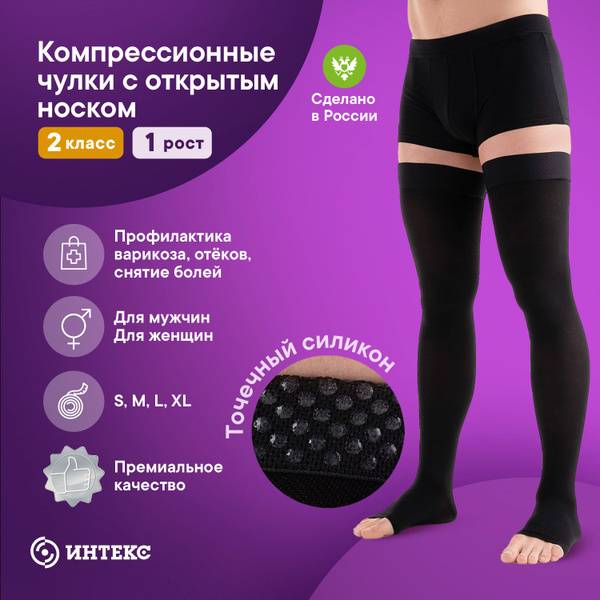 Experience superior comfort and therapeutic benefits with Intex compression stockings. These black, open-toe stockings offer a 20-30 mmHg compression level (Class 2), providing effective support and relief for various leg conditions. Please refer to the size chart in the image gallery for accurate sizing. This is crucial for optimal fit and therapeutic efficacy.