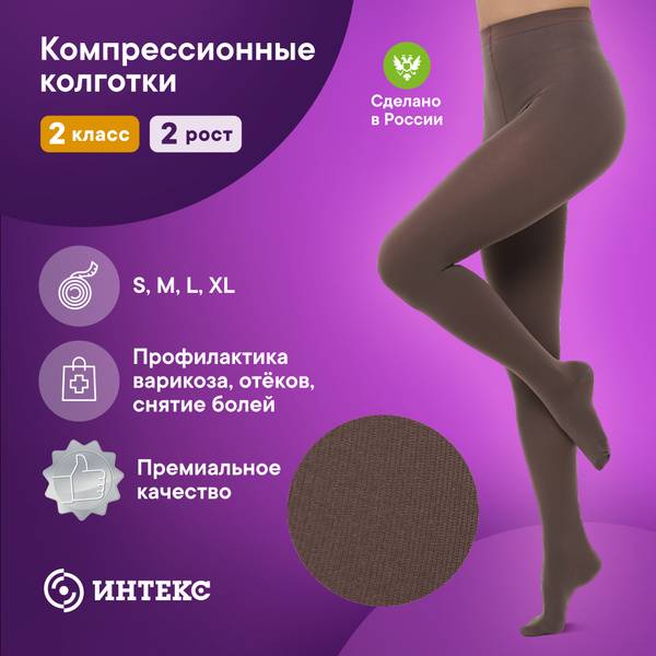 SEO Keywords: Intex compression stockings, class 2 compression stockings, 20-30 mmHg compression stockings, brown compression stockings, varicose veins, medical compression stockings, compression therapy, leg pain relief, swelling relief, venous insufficiency, blood circulation, comfortable compression stockings, durable compression stockings, graduated compression stockings, Intex medical stockings, leg health, women's health, gift for her, made in Russia.