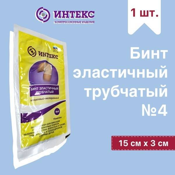 - Option 1 (Concise): Intecs #4 elastic tubular bandage for secure fixation of dry and wet dressings on hands, wrists, feet (adults) and children's hands, elbows, and shins. Single-use, PVC packaging. Latex and polyester.
