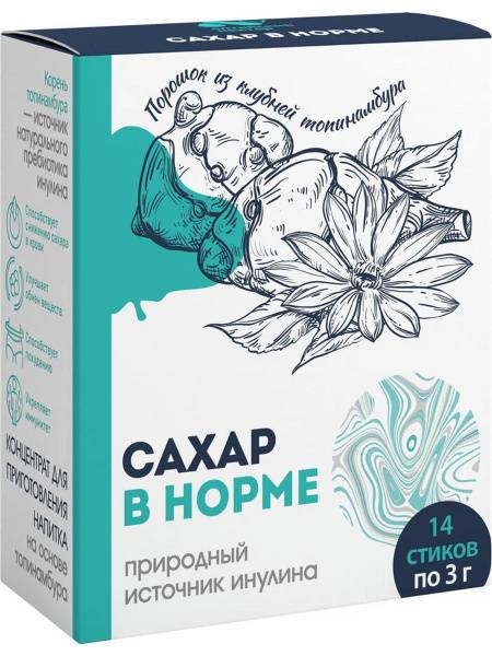 Inulin Concentrate "Sugar in Norm" is a unique dietary supplement designed to help maintain healthy blood sugar levels. Packaged in convenient 3-gram sticks, this product offers easy portion control anytime, anywhere. Inulin, a natural plant fiber, promotes healthy metabolism and digestive regularity. Its properties help support healthy glucose levels, making it beneficial for individuals with a predisposition to diabetes or those seeking better dietary management. "Sugar in Norm" provides a delicious, sugar-free alternative, allowing you to enjoy sweet flavors without the negative health consequences. This highly soluble concentrate easily blends into drinks, yogurt, or recipes, making it ideal for low-sugar, low-carbohydrate diets. Each stick contains an optimal dose of inulin for convenient daily use, helping manage appetite and enriching your diet with beneficial components. Formulated without artificial colors or preservatives, it's a safe and family-friendly option. Support your well-being and enhance your quality of life with Inulin Concentrate "Sugar in Norm."