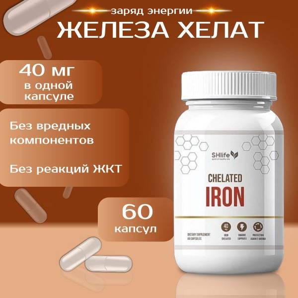 SHlife Iron Chelate 40mg - 60 Capsules: Highly Bioavailable Iron Supplement