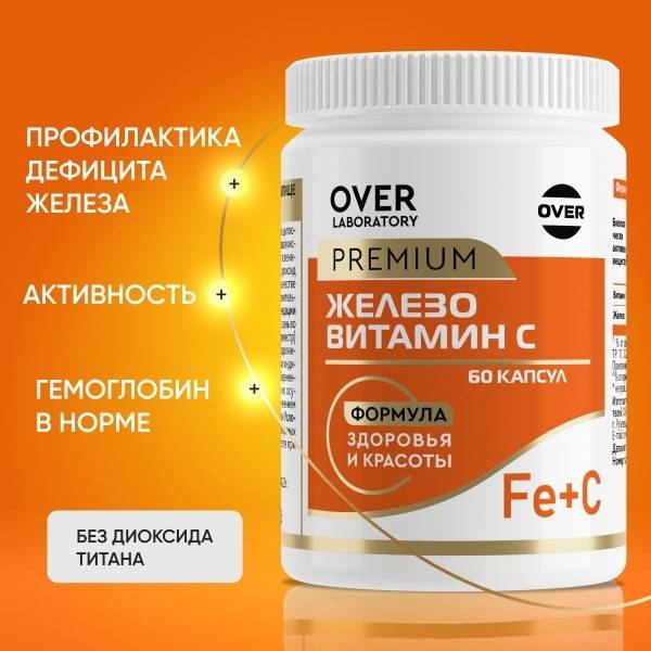 OVER Laboratory Iron Supplement with Vitamin C: 60 Capsules for Enhanced Energy & Wellbeing